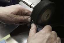 Un’apposita attrezzatura porta la fede nuziale alla misura richiesta.